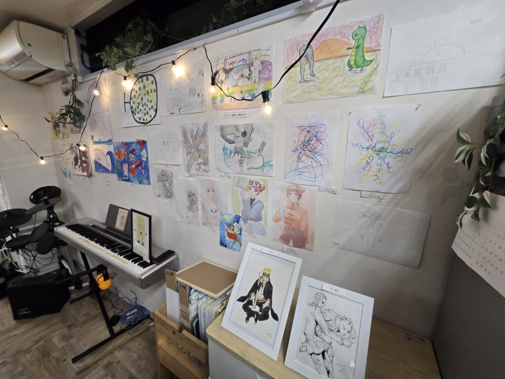 トーカ内で作品を作ることを、これまで一度もしてこなかった子もいます。外で走ることが大好きだったり、トランプやカードゲームなど「みんなで遊ぶ時間が好き」だったりと、彼らにとって「何かを作る」という行為は日常の選択肢にありませんでした。そんな子どもたちにとって、アートフェスティバルは当初「自分には関係のないこと」と捉えていたのだと思います。しかし、イベントの準備が進み、周りの子たちが作品づくりに向き合う姿を見ていくうちに「俺も何か作ってみようかな」「絵、描いてみようかな」「家で作ったやつも飾っていいの?」と意識が変わり始めた子がだんだん増えてきました。アートフェスティバルがきっかけになりアートという新たな扉を開いたのです。その結果、「初めてのやり方で絵を描いた!」「このゴミ、何かアートになりそうじゃない?」などと、子どもたちの世界が広がっているのを感じました。
